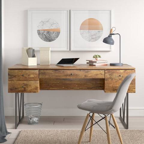 This elegant home office desk is from Trent Austin Design, which is made of engineered wood and has a distressed finish for a rustic vibe. It comes with four drawers for your vital paperwork and office supplies, providing enough storage space, and is suitable for larger spaces.