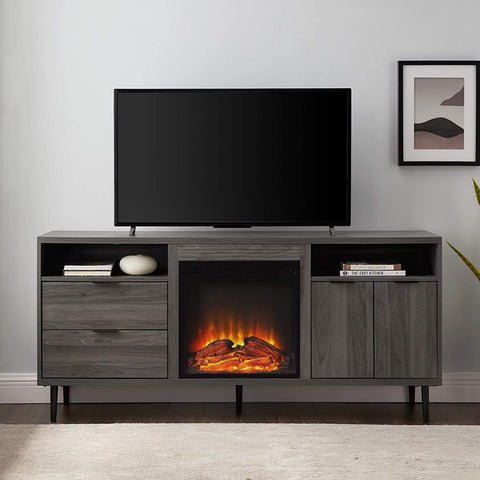 Walker EdisonMid-century Fireplace TV Stand