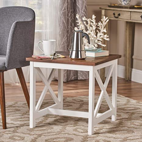 4. Christopher Knight Home Shammai Indoor Farmhouse Cottage Acacia Wood End Table with White Fram