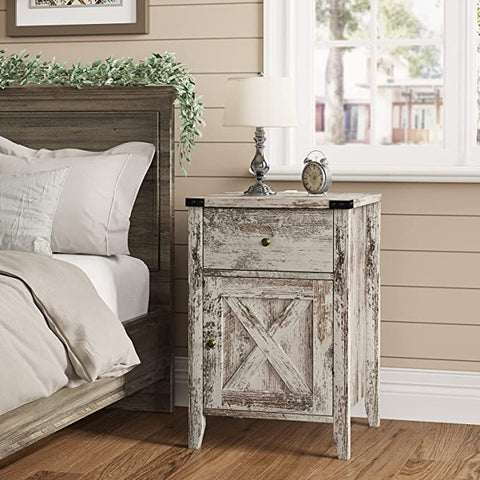 8. Itaar Farmhouse Rustic Nightstand with Charging Station for Bedroom