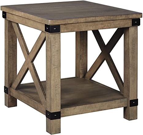 5.Signature Design by Ashley Aldwin Farmhouse Square End Table with Crossbuk Details