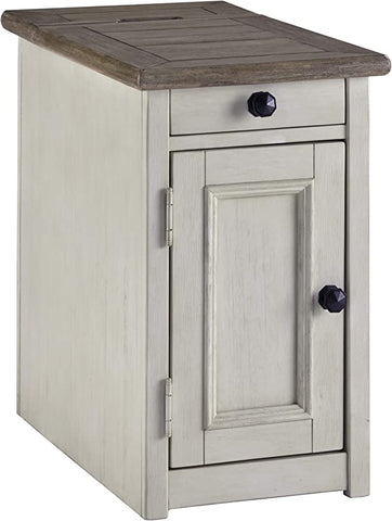 3. Signature Design by Ashley Bolanburg Farmhouse Chair Side End Table with Outlets and USB Ports