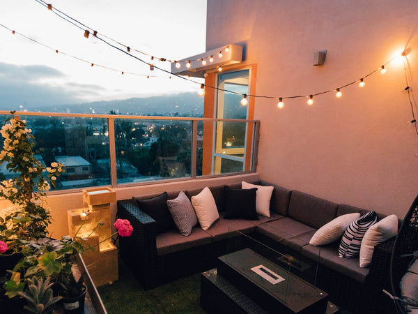 String light is the most effective and economical way to add a gorgeous glow to our balcony or deck. It can’t be tricky to hang if you have huge green plants, tall objects. Nail the string of lights along the edge of the window is also a good solution.