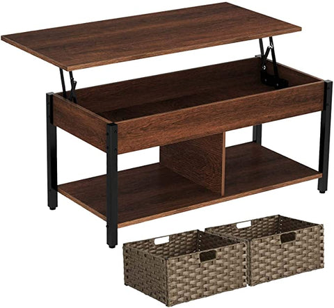 When it comes to the storage space master, Rolanstar Lift Top Coffee Table must have a name. A hidden compartment beneath the tabletop allows you to better allocate and organize your workspace while the lower open shelf is better for storing books and snacks. The matched rattan baskets could also increase your available storage space by keeping all your essentials handy and organized. The lift-top mechanism is an added feature to the basic function, which provides you with a large floating raised work surface with the size of 41.7” W x19.7” D.