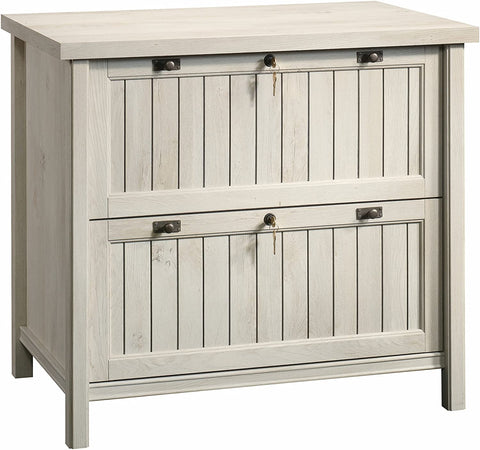If you prefer something less office-like and more adaptable, this file cabinet blending style and function together is for you. With a contemporary outline and slat-front detailed design, you could use this item to update your decor in an office or even a corridor. This lateral file cabinet has full extension slides and can accommodate letter or legal-size hanging files. We are always concerned about your safety, this is why this two-drawer file cabinet features a proprietary, interlocking safety mechanism that allows only one drawer to be open at a time. Furthermore, both drawers have a lock for secure document keeping. It truly is the ideal component for all of your storage requirements. This cottage-inspired, legal-size lateral file cabinet, finished in Chalked Chestnut and detailed with a sophisticated, framed, slat-front, will look stunning no matter where it exists.
