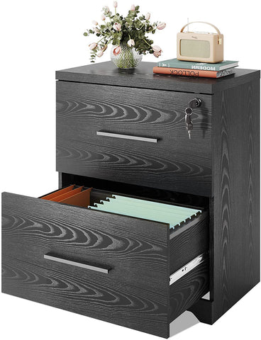 You don't have a large home office, do you? Well, you're in the right place. This 23.6"W x 15.7"D x 29.3"H compact piece allows you to keep private data without taking up the entire area. Letter, legal, A4, and legal size hanging file folders can be stored in the two spacious drawers with detachable dividers. These filing cabinet drawers operate smoothly and open entirely thanks to high-quality full-extension slides. Hence the contents of the drawers on the back are easily accessible. It conveniently fits next to your desk or in a compact nook. You can also use the extra surface for a printer or scanner since there is enough room on top. This wood file cabinet gives maximum flexibility and is anti-tilt by allowing only one drawer to be opened at a time. Furthermore, if you're serious about your files, these heavy-duty drawers lock, keeping your paperwork safe and secure.