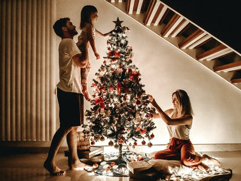 Inspire yourself with the idea of outdoor Christmas decorations and decorate your tree with more neutral decorations. Add a subdued metallic tone to let the fresh pine color show through. Hang a fir wreath over the mantelpiece and windowsill to break its natural touch.