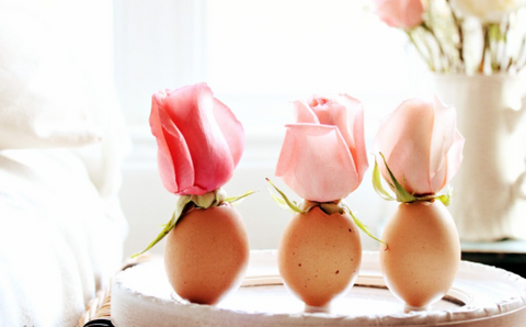 - Egg Vase: Make an Easter table centerpiece and decorate window sills with decorative vases made from eggshell halves and short, fresh flowers. I bet that it will make you smile spontaneously every time you walk by it!