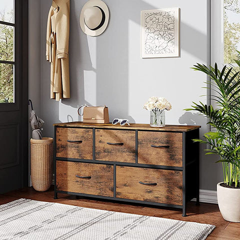 The two spaces have one thing in common: spacious and empty. The quickest way to clean up is to buy a multipurpose cabinet to realize the function of organization and decoration. It is worth to mentioning that this Devaise 5-drawer fabric dresser will get rid of the messy situation. If you're on a budget,it must be your best bet.